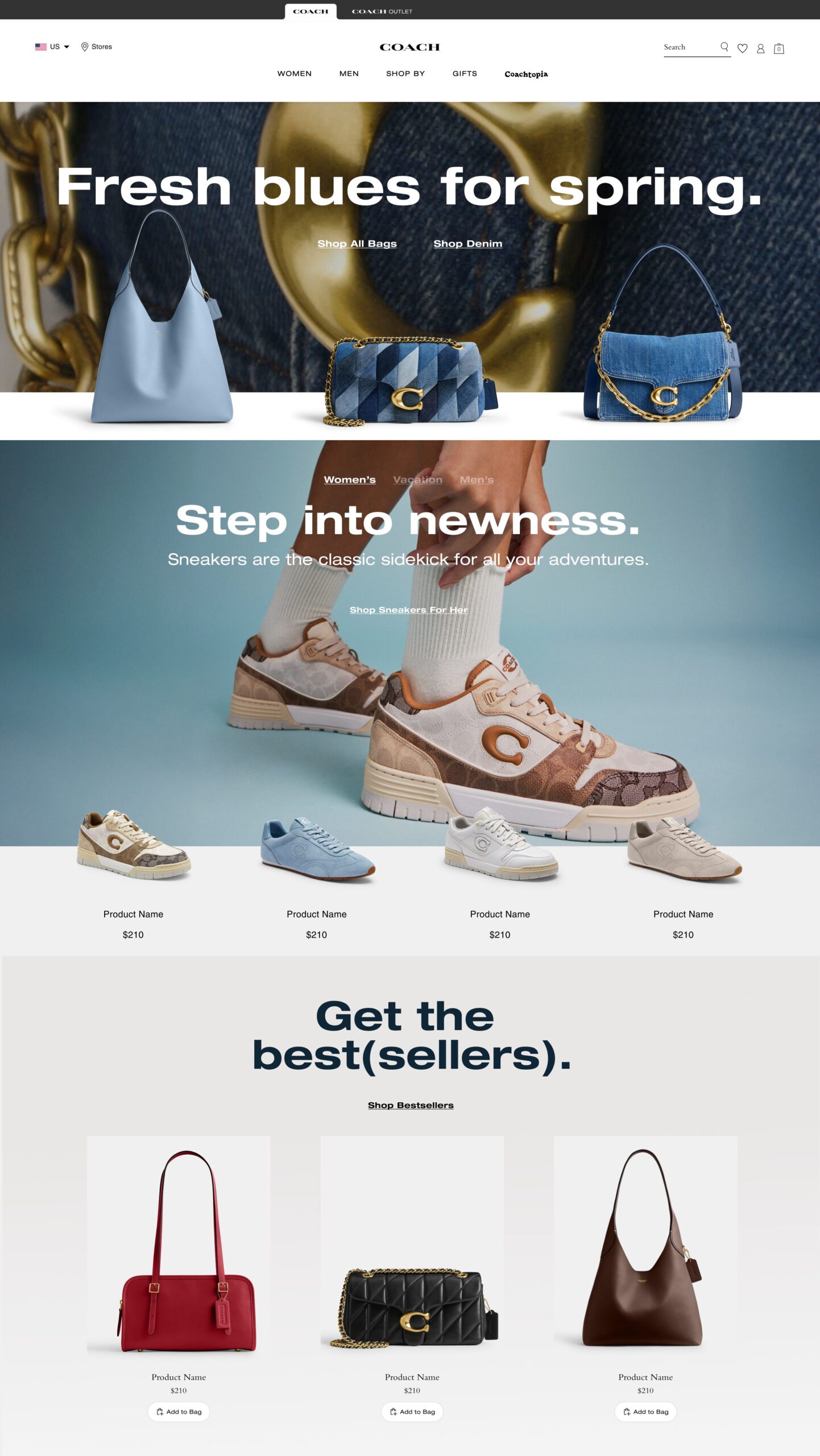 Creative direction on the production of site/email/social assets for Coach and Coach Outlet.